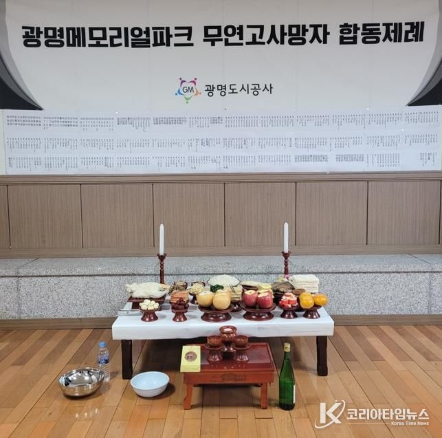 코리아타임뉴스 경기취재본부 | 광명도시공사는 지난 10월 6일 추석을 맞아 일직동 메모리얼파크 무연고단에 안치된 영령들의 외로운 넋을 기리는 합동제례를 봉행했다.