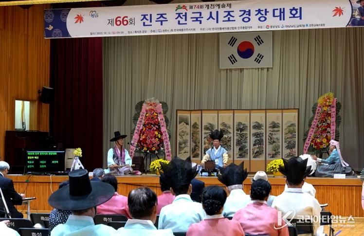 코리아타임뉴스 오영주 기자 | 한국전통예악총연합회 진주통합지부는 지난 12일 촉석초등학교 강당에서 시조경창대회 참가자 및 관람객 등 300여 명이 참석한 가운데 ‘제66회 전국시조경창대회’를 성황리에 개최했다.