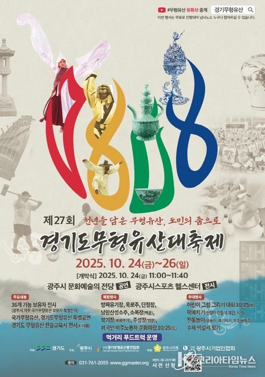 코리아타임뉴스 이아름 기자 | 광주시는 오는 24일부터 26일까지 3일간, 광주시문화예술의 전당 및 스포츠센터, 야외광장 일원에서 ‘제27회 경기도무형유산대축제’를 개최한다고 13일 밝혔다.
