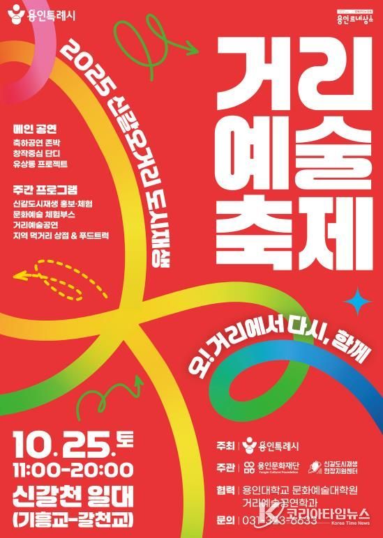 코리아타임뉴스 이아름 기자 | 용인특례시는 25일 신갈오거리에 있는 신갈천 일대에서 ‘2025 신갈오거리 도시재생 거리예술축제’를 개최한다고 14일 밝혔다.