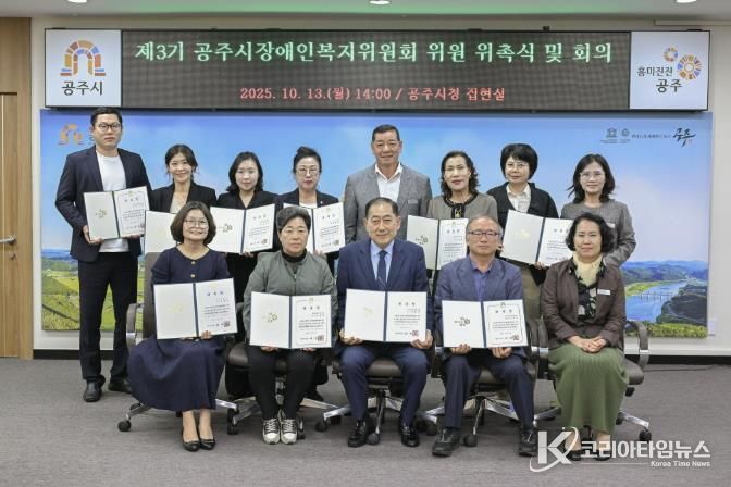 코리아타임뉴스 충남취재본부 | 공주시는 지난 13일 시청 집현실에서 ‘제3기 공주시 장애인복지위원회 위원 위촉식 및 회의’를 개최하고, 민관이 함께 장애인 정책 현안 해결에 나서기 위한 본격적인 활동을 시작했다고 밝혔다.