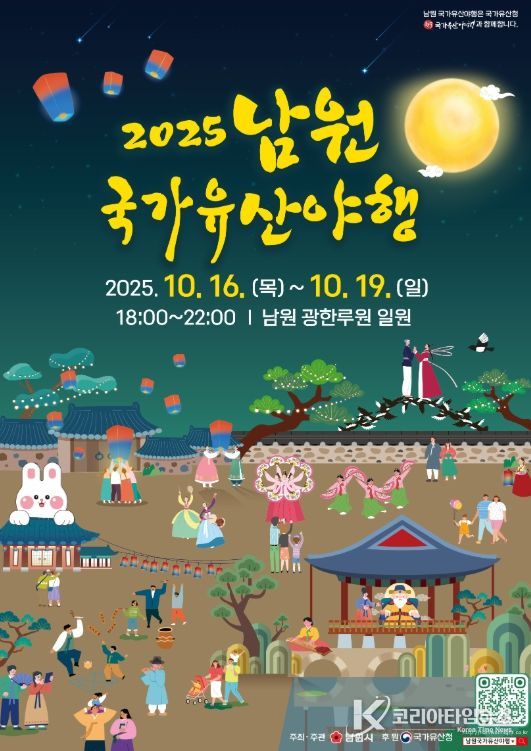 코리아타임뉴스 김태훈 기자 | 남원시가 주최하는 '남원 국가유산 야행'이 오는 10월 16일부터 19일까지 4일간 광한루원 일원에서 열린다.