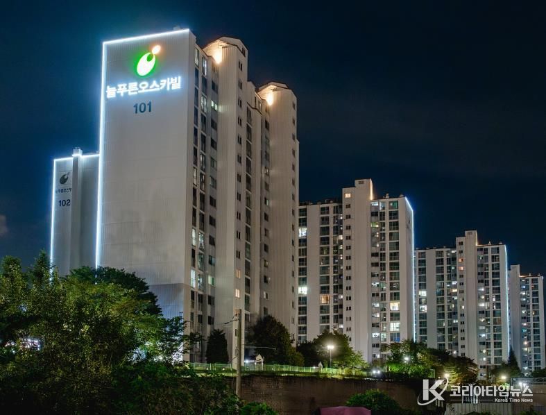 코리아타임뉴스 윤광희 기자 | 오산시 관내 아파트(공동주택) 단지들이 오색찬란한 빛으로 물들고 있다.