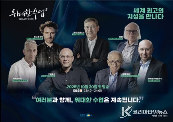 코리아타임뉴스 연예팀 | EBS 대표 지식 강연 프로그램 ‘위대한 수업, 그레이트 마인즈’가 오는 10월 20일 다섯 번째 시즌으로 시청자 곁을 찾는다.