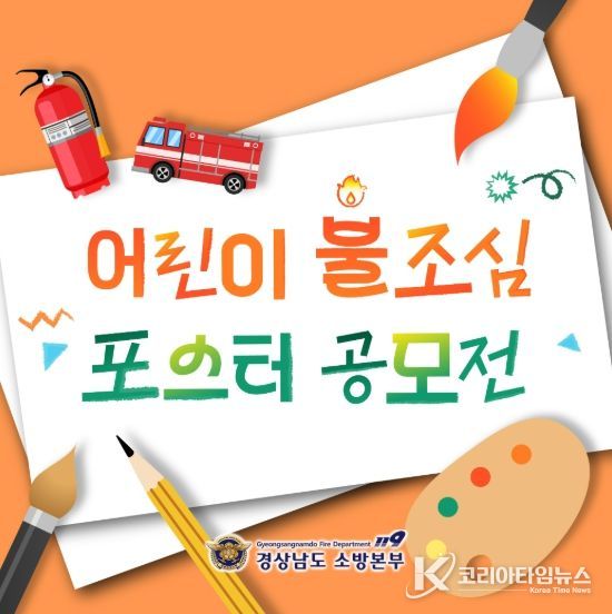코리아타임뉴스 김태훈 기자 | 경상남도 소방본부는 제78회 불조심 강조의 달을 맞아 오는 10월 31일까지 도내 어린이를 대상으로 ‘어린이 불조심 포스터 그리기 공모전’을 개최한다고 밝혔다.