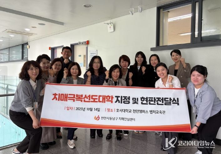 코리아타임뉴스 의료보건팀 | 천안시는 14일 치매극복선도대학으로 신규 지정된 호서대학교 글로벌융합대학에 현판을 전달했다고 밝혔다.