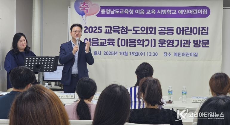 코리아타임뉴스 사회팀 | 충남교육청은 15일, 충청남도의회 신한철 의원과 함께 천안시 예인어린이집을 대상으로 어린이집 이음교육(이음학기) 운영 현장을 방문했다.