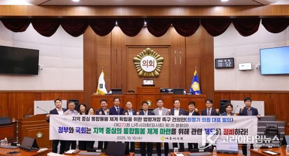 코리아타임뉴스 노승선 기자 | 나주시의회는 15일 제273회 임시회 제1차 본회의를 열고 ‘지역 중심 통합돌봄 체계 확립을 위한 법령개정 촉구 건의안’을 채택했다.