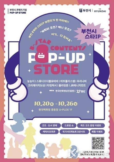 코리아타임뉴스 경기취재본부 | 부천시는 10월 20일부터 26일까지 현대백화점 중동점 U-PLEX 1층에서 지역 우수 콘텐츠 기업 8개 사가 참여하는 팝업스토어 ‘8 CONTENTS, ONE STAGE in BUCHEON’을 운영한다.