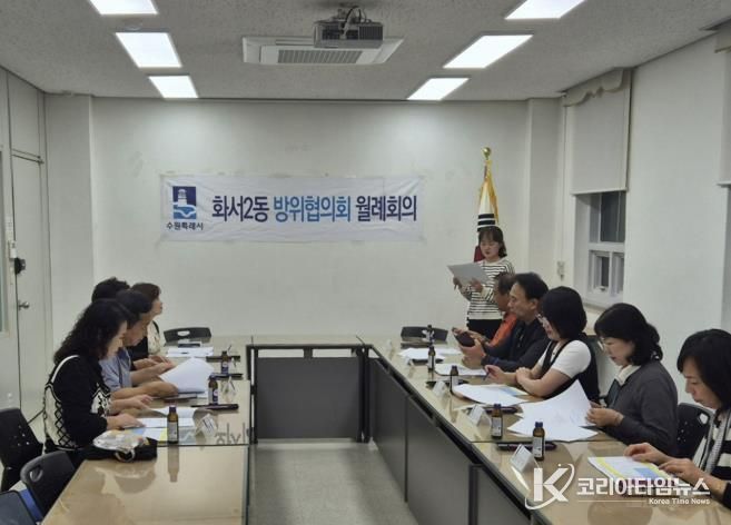 코리아타임뉴스 사회팀 | 수원시 팔달구 화서2동은 10월 14일 오후 7시, 행정복지센터 2층 소회의실에서 ‘화서2동 방위협의회 10월 월례회의’를 개최했다. 이날 회의에는 황성준 화서2동 방위협의회 위원장을 비롯한 위원 10여 명이 참석해 지역 안보 현안과 시정 홍보사항을 공유했다.