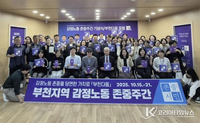 코리아타임뉴스 경기취재본부 | 부천시 일쉼지원센터는 지난 14일, 감정노동 존중 주간 부천다움 포럼과 기념식을 성공적으로 개최했다. 이번 행사는 ‘감정노동자 보호법’(산업안전보건법 제41조) 시행 7주년을 맞아, 감정노동 존중을 당연한 가치로 확산하기 위해 부천시 일쉼지원센터와 부천상공회의소, 한국노총 부천김포지역지부가 공동으로 추진했다.
