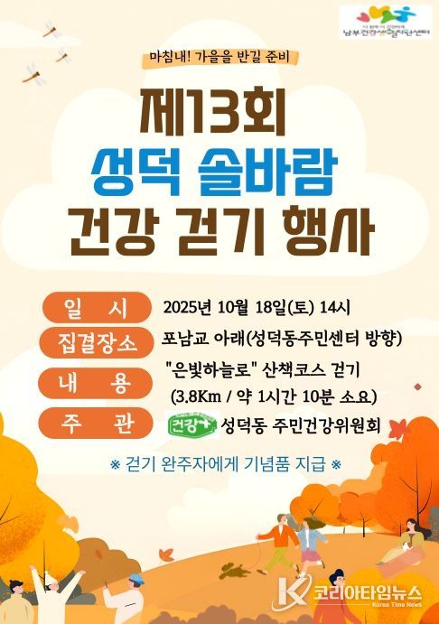 시는 이번 행사를 통해 “걷기는 시민의 건강을 지키는 가장 손쉬운 실천이며, 일상 속 작은 걸음이 큰 건강을 만든다”는 인식을 확산하고, 시민 스스로 건강을 관리하는 생활 속 건강문화 정착을 기대하고 있다.