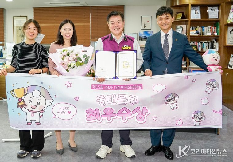 코리아타임뉴스 오영주 기자 | 서울 동대문구가 ‘2025 대한민국 SNS 대상’에서 자치구 부문 최우수상을 수상하며 온라인 행정 소통 분야에서 우수한 역량을 인정받았다.