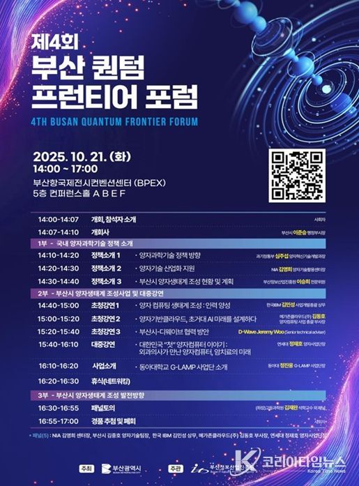 코리아타임뉴스 오영주 기자 | 부산시는 오는 10월 21일 오후 2시 부산항국제전시컨벤션센터 컨퍼런스홀에서 '제4회 부산시 퀀텀 프런티어 포럼'을 개최한다고 밝혔다.