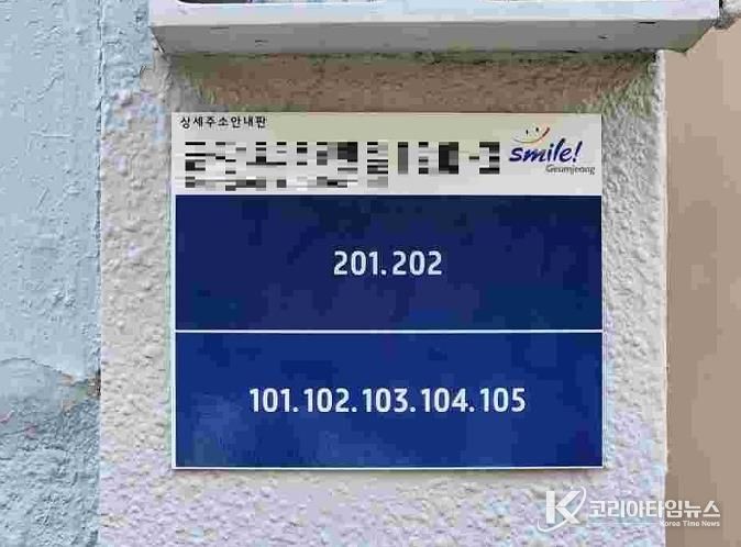 코리아타임뉴스 부산취재본부 | 부산시 금정구는 주민의 생활 속 주소 활용 편의성을 높이기 위해 다가구주택 등 건물 240곳에 도로명주소 상세주소를 직권으로 부여하고 상세주소 안내판 설치를 완료했다고 17일 밝혔다.