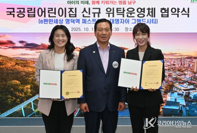 코리아타임뉴스 윤경수 기자 | 대구 남구는 지난 10월 15일 명품 보육환경 조성을 위해 신규 개원 국공립어린이집 2개소의 위탁운영체 협약식을 개최했다.