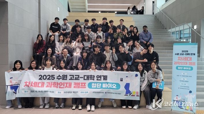 코리아타임뉴스 사회팀 | 경기도수원교육지원청은 18일 아주대학교 혜강관과 원천관에서 ‘2025 수원 고교-대학 연계 차세대 과학인재 캠프’를 운영했다.