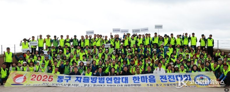 코리아타임뉴스 울산취재본부 | 울산광역시 동구 자율방범연합대는 10월 19일 오전 10시 염포산 및 울산대교 전망대 일원에서 한마음 전진대회를 개최했다.