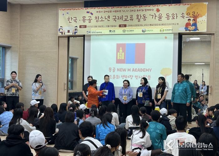 코리아타임뉴스 기동취재팀 | (재)파주시청소년재단 금촌청소년문화의집은 지난 18일부터 19일까지 2일간 몽골 청소년 32명과 동패중학교, 지산고등학교 및 문산동중학교 등 파주관내 학교 및 공유학교 청소년 45명이 함께 교류하는 활동인 ‘가을동화속으로’를 완료했다.