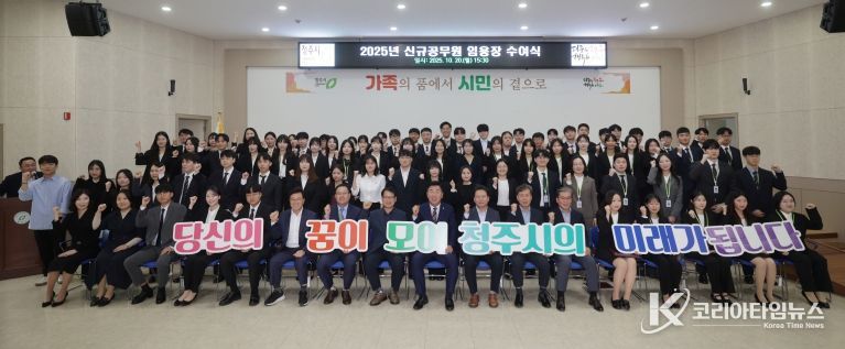 코리아타임뉴스 충북취재본부 | 청주시는 20일 민선 8기 들어 처음으로 ‘가족과 함께하는 신규공무원 임용장 수여식’을 개최했다. 신규공무원 79명은 가족의 축하 속에 공직사회의 첫발을 내디뎠다.