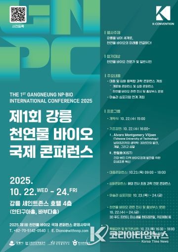 코리아타임뉴스 김택호 기자 | 강릉시는 강릉관광개발공사, 한국과학기술연구원(KIST) 강릉분원 천연물연구소와 함께 오는 22일부터 24일까지 강릉 세인트존스 호텔에서 ‘제1회 강릉 천연물 바이오 국제 콘퍼런스’를 공동 개최한다.