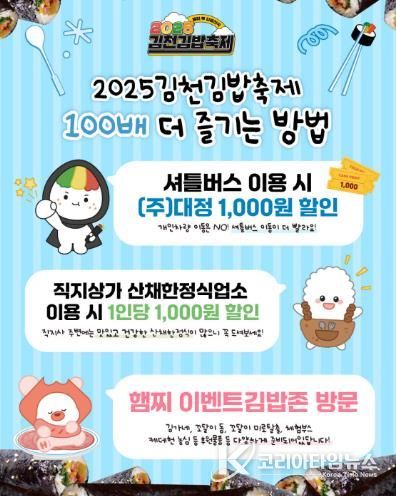 코리아타임뉴스 경북취재본부 | 『2025 김천김밥축제』가 오는 25일과 26일 양일간 직지문화공원과 사명대사공원 일원에서 개최된다.