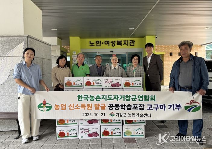 코리아타임뉴스 오영주 기자 | 한국농촌지도자거창군연합회는 지난 21일 거창군 삶의 쉼터(노인‧여성‧장애인복지관)에 사랑의 고구마 10kg들이 25박스 총 250kg을 기부했다.