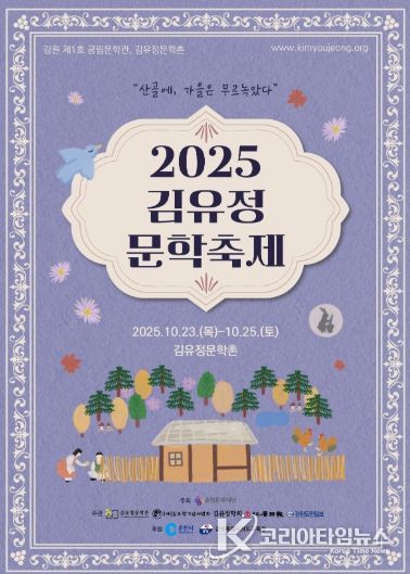 코리아타임뉴스 노승선 기자 | 가을빛이 깊어가는 신동면 실레마을에 문학의 향기가 물든다. 한국 근대 단편문학의 거장 김유정을 기리는 ‘2025 김유정문학축제’가 오는 23일부터 25일까지 김유정문학촌 일원에서 열린다.
