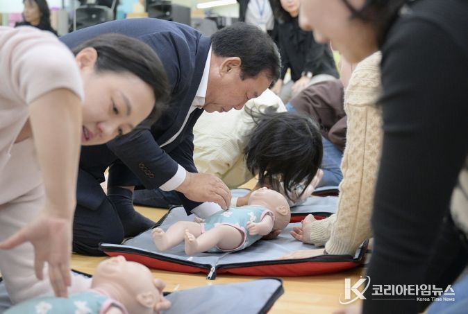코리아타임뉴스 세종취재분부 | 최민호 세종특별자치시장이 21일 종촌동 육아종합지원센터에서 ‘찾아가는 현장소통’을 열고 영유아 학부모 40여 명과 함께 심폐소생술을 재숙지하고 응급대처의 중요성을 공유했다.