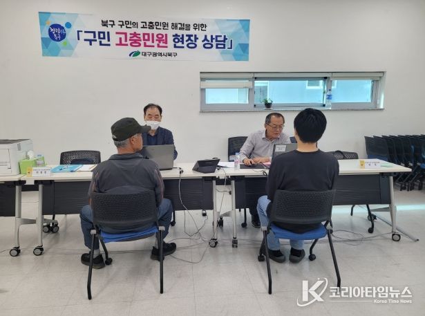 코리아타임뉴스 노승선 기자 | 대구 북구청은 10월 21일 읍내동 행정복지센터에서 행정 관련 고충민원을 직접 듣고 해결 방안을 적극적으로 모색하기 위한 '찾아가는 구민 고충처리위원회'현장 상담을 운영했다.