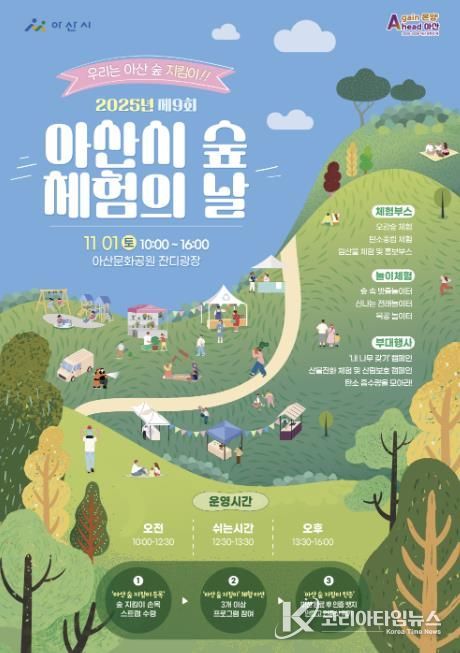 코리아타임뉴스 김택호 기자 | 아산시는 오는 11월 1일 오전 10시부터 오후 4시까지 아산문화공원 잔디광장에서 ‘2025년 제9회 아산시 숲 체험의 날’ 행사를 개최한다고 밝혔다.