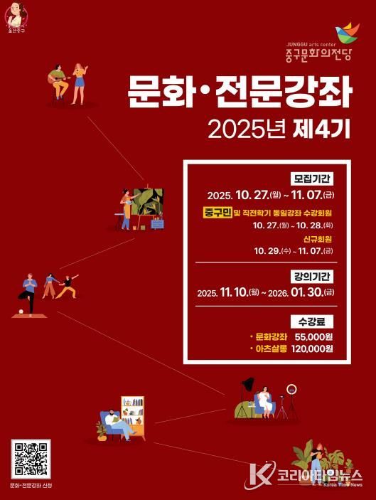 코리아타임뉴스 울산취재본부 | 울산 중구문화의전당이 2025년 4기 문화센터 수강회원을 모집한다.