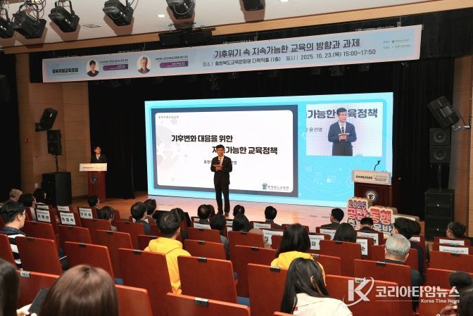 코리아타임뉴스 사회팀 | 충청북도교육청은 23일, 교육문화원 다목적홀에서 기후위기 속 지속가능한 교육의 방향과 과제를 주제로 2025. 충북국제교육포럼을 개최했다.