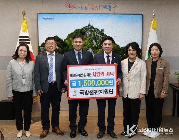 코리아타임뉴스 충남취재본부 | 계룡시는 지난 24일 국방출판지원단(단장 신기진)으로부터 현금 150만 원을 기탁받았다고 밝혔다.
