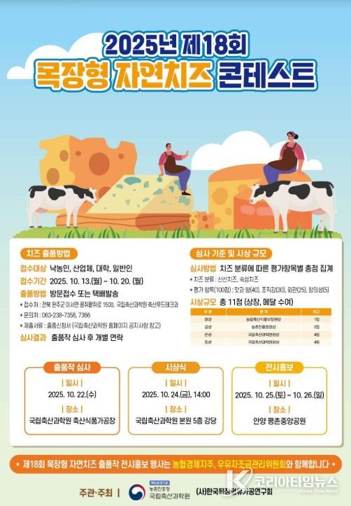 이번 대회 출품 치즈는 10월 25~26일 경기도 안양시 평촌중앙공원에서 열리는 ‘세계 우유의 날, 2025 밀크&치즈 페스티벌’에서 전시될 예정이다.