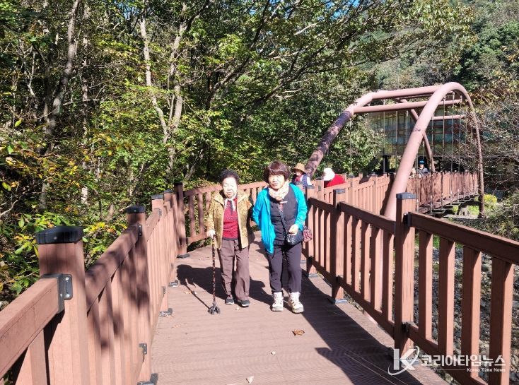 코리아타임뉴스 충남취재본부 | 장애없는 숲길을 통한 따뜻한 동행이 가능한 금산산림문화타운의 무장애나눔길이 장애인과 치매 어르신 등 보행약자들이 함께하는 안전한 숲 산책 명소로 큰 인기를 얻고 있다.
