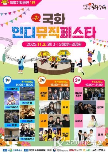 코리아타임뉴스 오영주 기자 | 창원특례시는 오는 11월 2일, 국화 향기가 가득한 3·15해양누리공원에서 지역 밴드와 인디뮤지션이 함께 꾸미는 ‘국화 인디뮤직페스타’를 선보인다고 밝혔다.