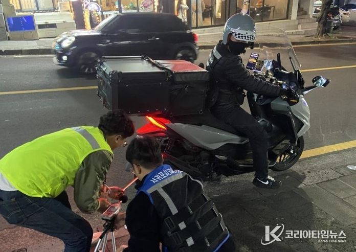 코리아타임뉴스 노승선 기자 | 서귀포시는 29일 이륜차 통행이 많은 중문동 주요 도로에서 안전기준 위반 이륜차에 대한 유관기관 합동 지도·단속을 실시했다.