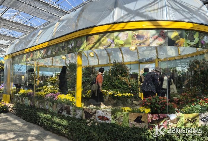 ‘나비의 가을정원’은 나비곤충생태관 내 ‘명품 국화분재 전시관’ 속 특별 전시 공간으로, 국화 향기 속에서 생동감 넘치는 나비의 날갯짓을 감상할 수 있도록 구성됐다.