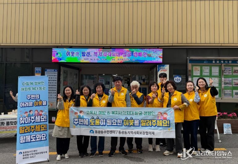 코리아타임뉴스 이아름 기자 | 부산 중구 동광동과 지역사회보장협의체(민간위원장 김연순)는 복지 사각지대에 놓인 이웃을 조기에 발굴하고 지원체계를 강화하기 위해 지난 30일 동광동주민센터 입구에서 복지 사각지대 발굴을 위한 캠페인을 실시했다.
