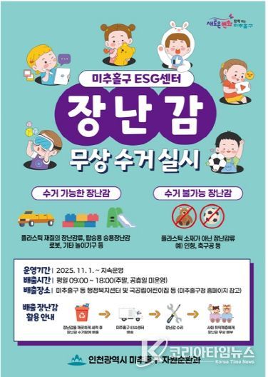 코리아타임뉴스 이아름 기자 | 인천 미추홀구시설관리공단(이사장 박종구)은 구(區) 자원순환과가 주관하는 ‘장난감 무상 수거 및 수리 사업’에 동참한다고 3일 밝혔다.
