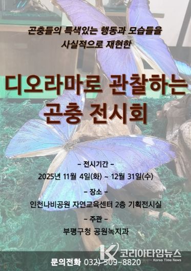 코리아타임뉴스 문화팀 | 부평구는 오는 4일부터 내년 1월 5일까지 인천나비공원에서 ‘디오라마로 관찰하는 곤충 전시회’를 개최한다고 밝혔다.