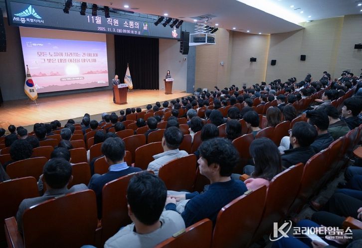최민호 시장은 3일 시청 여민실에서 열린 11월 직원 소통의 날 행사에서 예측 불가능한 인공지능(AI) 시대에 꼭 필요한 것은 지도자의 올바른 시대정신과 공직자의 책임감이라고 역설했다.