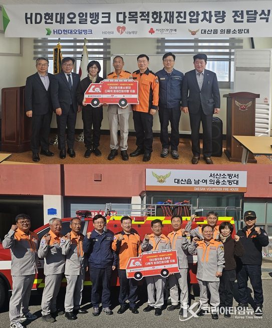 기증식에는 최장일 서산소방서장을 비롯해 대산남여의용소방대원, 현대오일뱅크 관계자, 공동모금회원, 대산읍장 등 20여 명이 참석해 새로운 차량의 안전 운행과 지역사회 안전 향상을 기원했다.