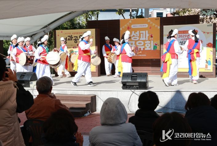 성과공유회는 소수 풍물공연을 시작으로 △신이나 벨리댄스 △어머니 숟가락 난타 △전통춤 마실 △연리지 시낭송 △시니어 택견 △샬랄라 라인댄스 △기타랑23 △설우산난타 등 총 9개 동아리의 무대 발표가 진행돼 큰 호응을 얻었다.