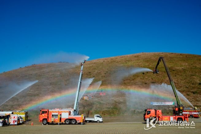 산불대응 훈련과 함께 전국의용소방대 연합회와 애월읍 주민, 새별오름 등산객을 대상으로 산불예방 수칙 안내 및 불법소각 근절 홍보 등 산불예방 캠페인도 병행했다.