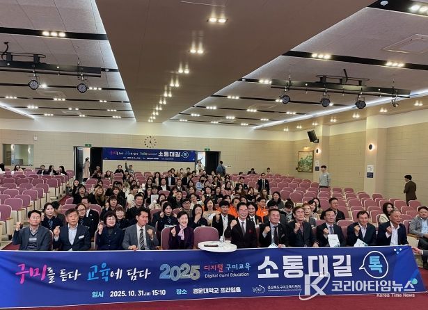 코리아타임뉴스 사회팀 | 경상북도구미교육지원청은 10월 31일 금요일 경운대학교 프라임홀에서 도의회 의원, 경상북도교육청연수원장, 경상북도교육청구미도서관장, 관내 유·초·중·고등학교 교(원)장 대표, 학교운영위원장협의회, 학부모회협의회, 녹색어머니회, 구미학생안전자원봉사자회, 학부모자원봉사자회, 학생선도단, 학원연합회, 주민감사관, 교육계 원로, 교육발전특구 관계자 등 구미 교육가족 300여 명을 초청하여 ‘2025 교육감과 함께하는 구미교육 소통대길 톡’을 개최했다.