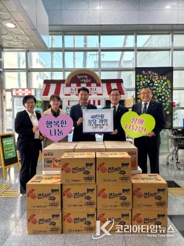 코리아타임뉴스 오영주 기자 | 거창군 거창읍 지역사회보장협의체은 지난 4일 거창군 재활용선별시설 근로자 16명 과 관리직원 2명이 거창읍 공유냉장고 ‘찾아가는 나눔곳간’에 40만 원 상당 라면을 기부했다고 밝혔다.