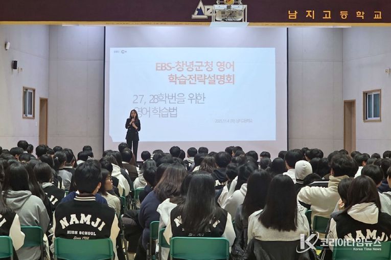 코리아타임뉴스 경남취재본부 | 창녕군은 지난 4일 남지고등학교에서 1~2학년 학생 240명을 대상으로 ‘EBS 대표강사 초청 학교로 찾아가는 학습전략 설명회’를 개최했다. 이로써 군은 올해 계획된 EBS 대표강사 초청 학습전략 설명회를 모두 성공적으로 마무리했다.