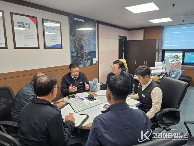 코리아타임뉴스 경남취재본부 | 거제시는 11월 6일 시청 부시장실에서 민기식 부시장을 주재로 하수도 준설업체 대표 3명과 상하수도과장, 팀장. 담당 주무관 등 7명이 참석한 가운데 ‘하수도 준설현장 안전사고 예방 간담회’를 개최했다.